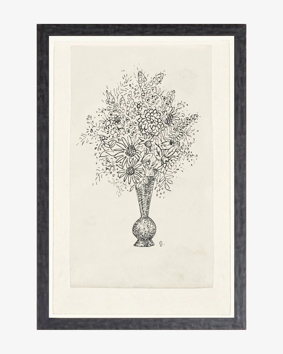A historically inspired sketch and frame, the Black & White Bouquet adds character to your rooms. Fine line details and an imaginative collection of flowers bring to life a whimsical garden through this still-life drawing.Â