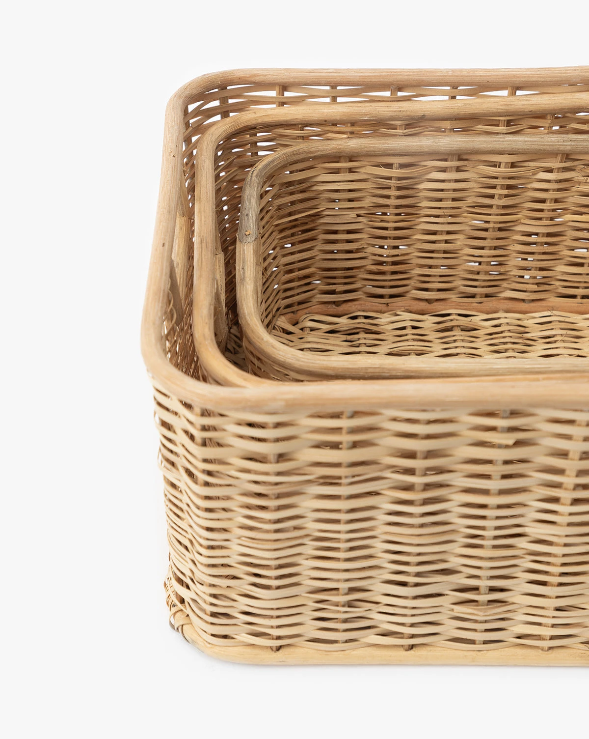 With a natural look and feel, the Palm & Rattan Basket brings extra storage to your space with its handled, rectangular form. Handmade from palm and rattan, this basket adds the perfect amount of both dimension and texture with its woven form.