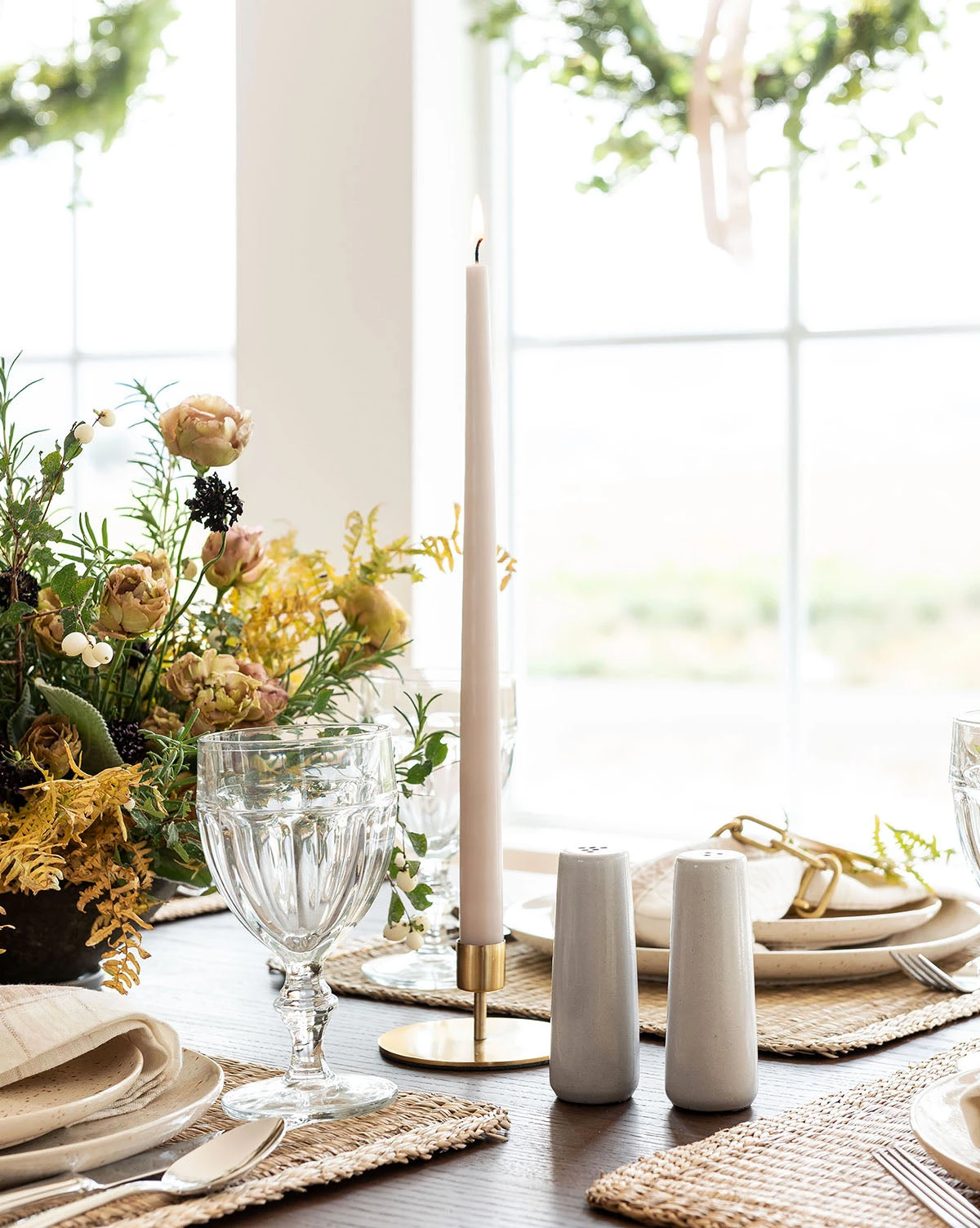 Slender and shapely, these Ceramic Salt & Pepper Shakers blend easily with existing tablescape decor. Whether in use, or simply styled on your kitchen counter, their contemporary shape is both functional and beautiful.