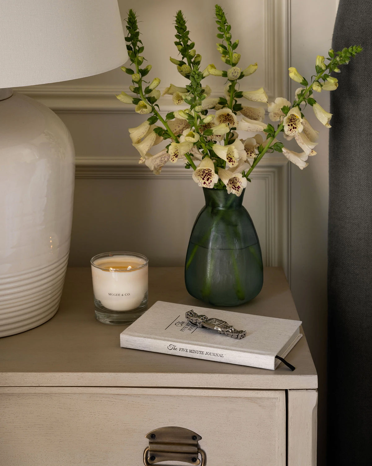 Its French-made glass has a stunning aesthetic, and can easily be recycled as a vase or organizational piece after its use. Slow-burning soy wax, cotton wicks, and therapeutic essential oils give this luxury candle a clean burn and an aroma that envelops your space. Each of our candles are intended to layer with one another, so blend this candle with another in the collection for a personalized home aroma that highlights your favorite scent palettes.