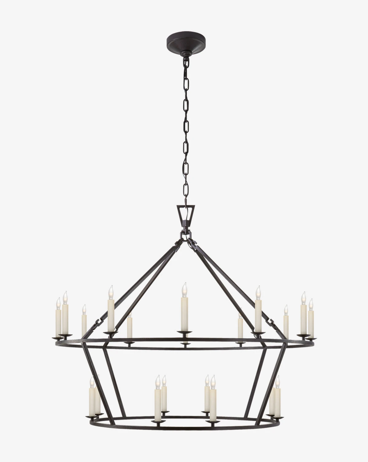 Two tiers surrounding a geometric shape create this industrial fixture that lights up your space in more ways than one. Our Darlana chandelier pairs a modern base with classic candle style lamps, updating your lighting with eclectic style.