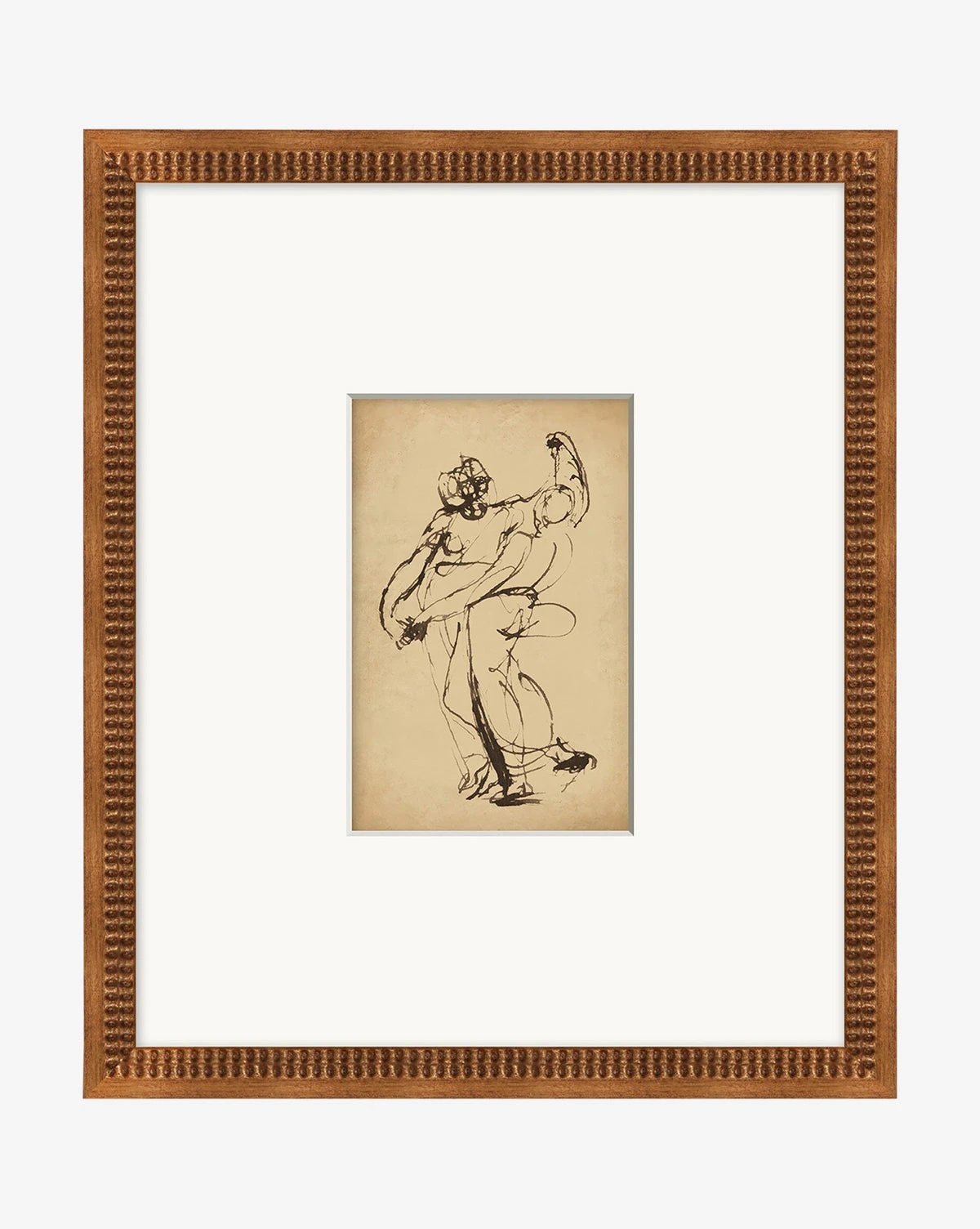 Displaying art in progress, Entwined evokes emotion through its clever use of negative space. Fitted with a single mat, and warm toned wood frame, this piece blends seamlessly with your existing decor, whether it’s styled as part of a gallery wall, or layered on your mantel.Â