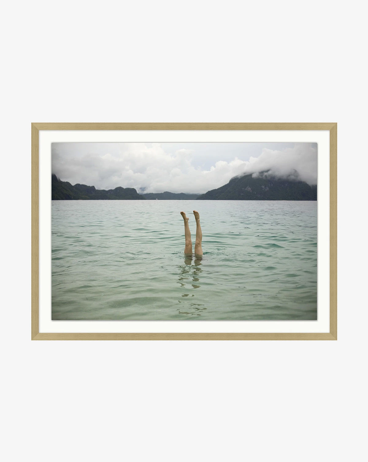 Playful but refined, Handstand has a wistful quality that is charming and endearing. A giclee print on straight cut matte paper, this piece is floated on mat and finished with a wood shadowbox.