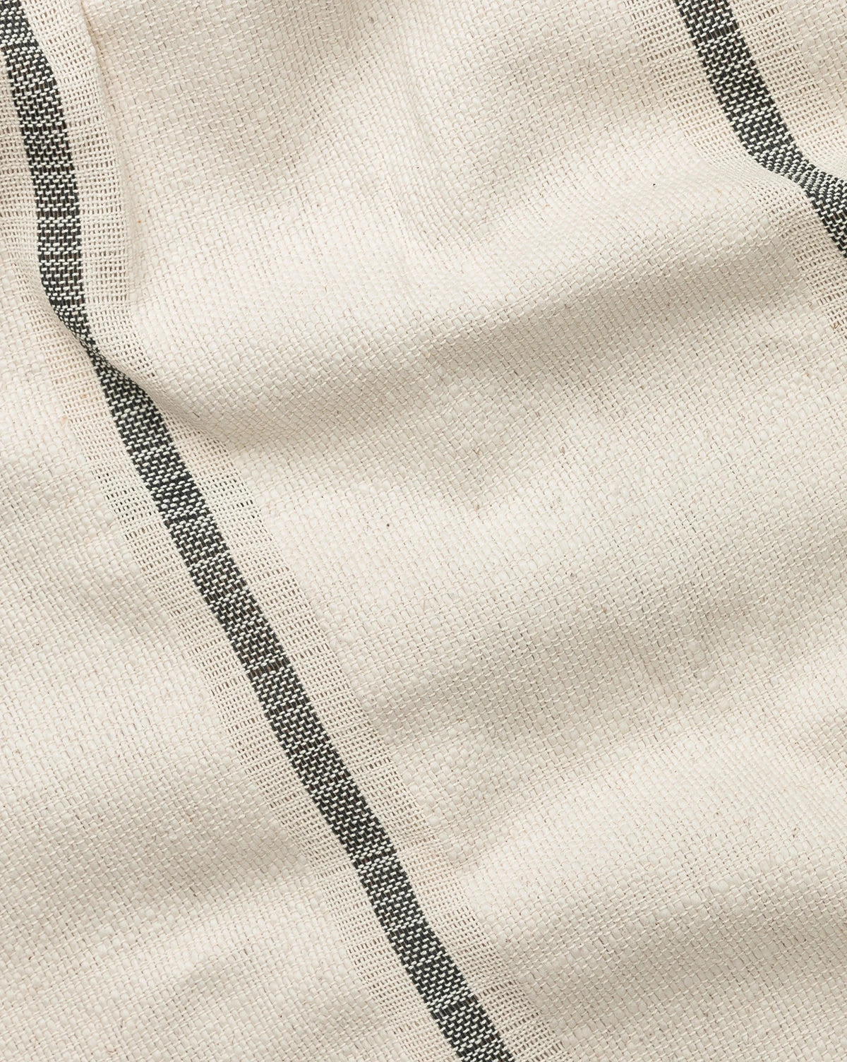 Hand-loomed using rustic hand-spun cotton and refined cotton twine, the Helena Soft Fringe Black & Cream Blanket is created from an incredibly lightweight and soft fabric. With a striped motif, this blanket is perfect for layering during the colder months, or for use on its own during summer.