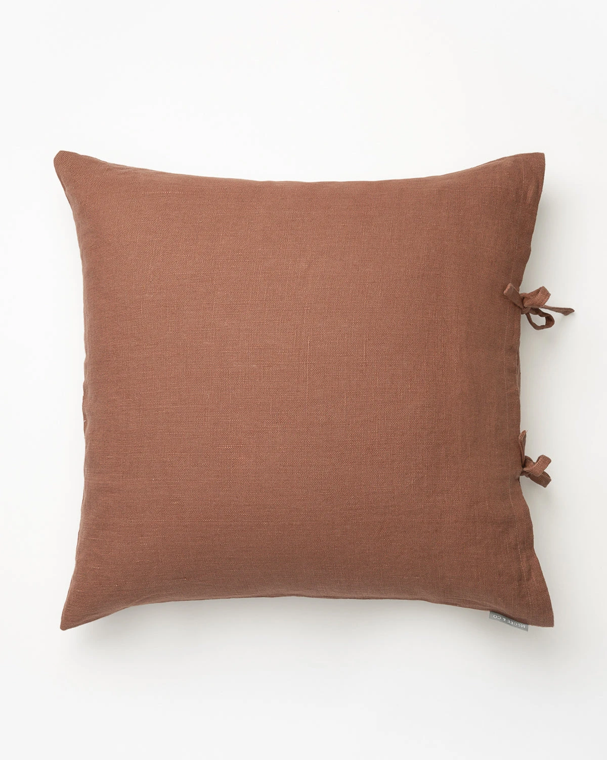 The Kara Linen Pillow Cover is crafted from 100% linen and is beautifully simple. Its single-tone color block design is anything but plain, decorated with elegant tie details that complement each of its available colorways. Incorporated into pillow vignettes everywhere from sofas to bedding, the Kara Linen Pillow Cover adds depth and warmth to your space.Â