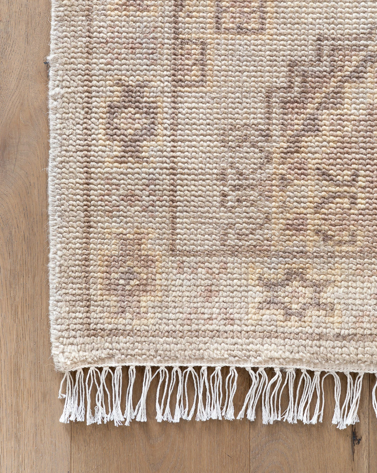 Hand-knotted from wool, the Kenna Hand-Knotted Wool Rug blends beauty and durability in a design that grounds your space. Its tonal palette is warm and inviting, while its fringe is playful and casual.