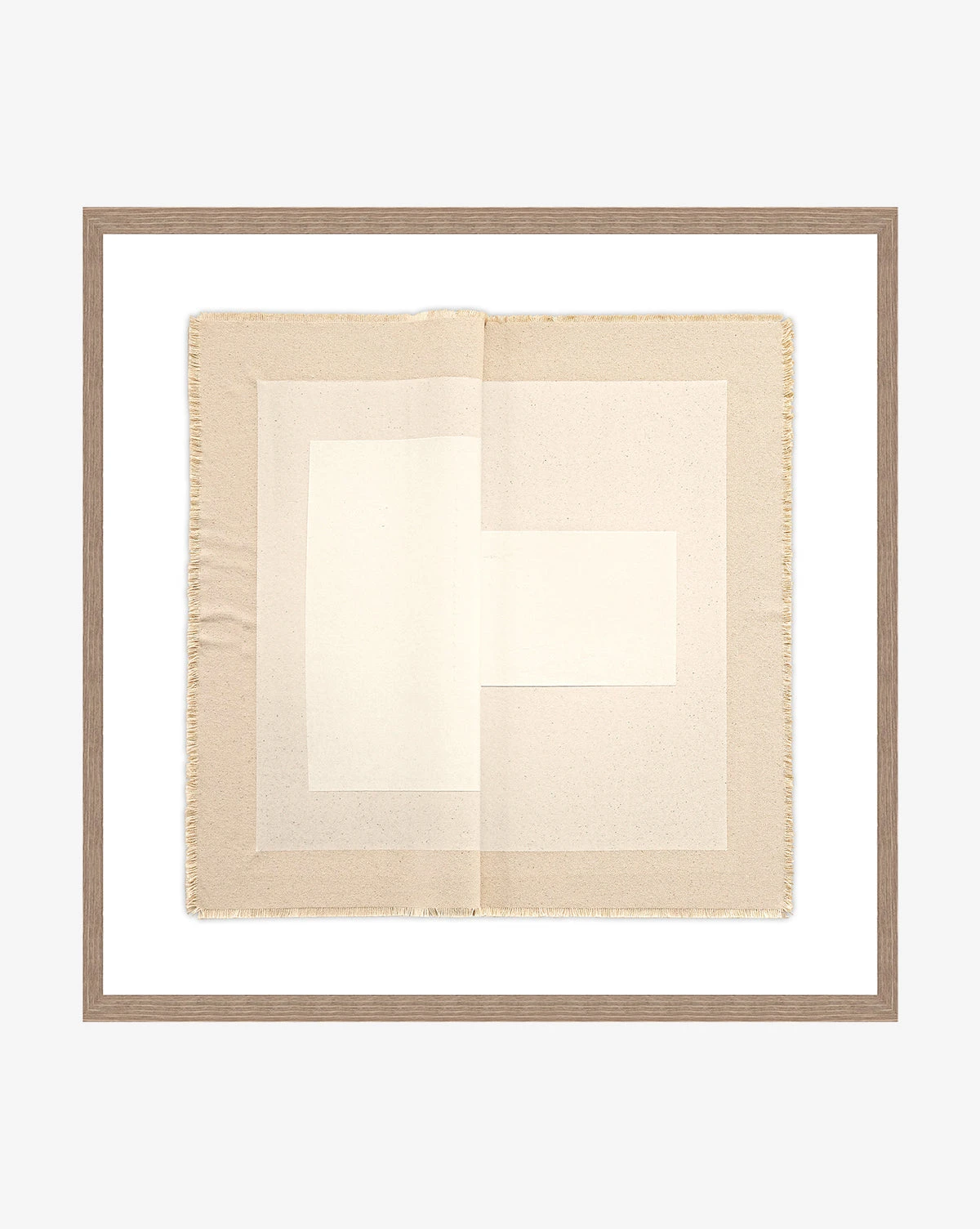 With three-dimensional texture, Mind Division III is a hand painting on fabric. Its frayed edges and folded element bring dimension and detail wherever it is placed. Framed in natural wood, museum-quality materials elevate your decor.   Â