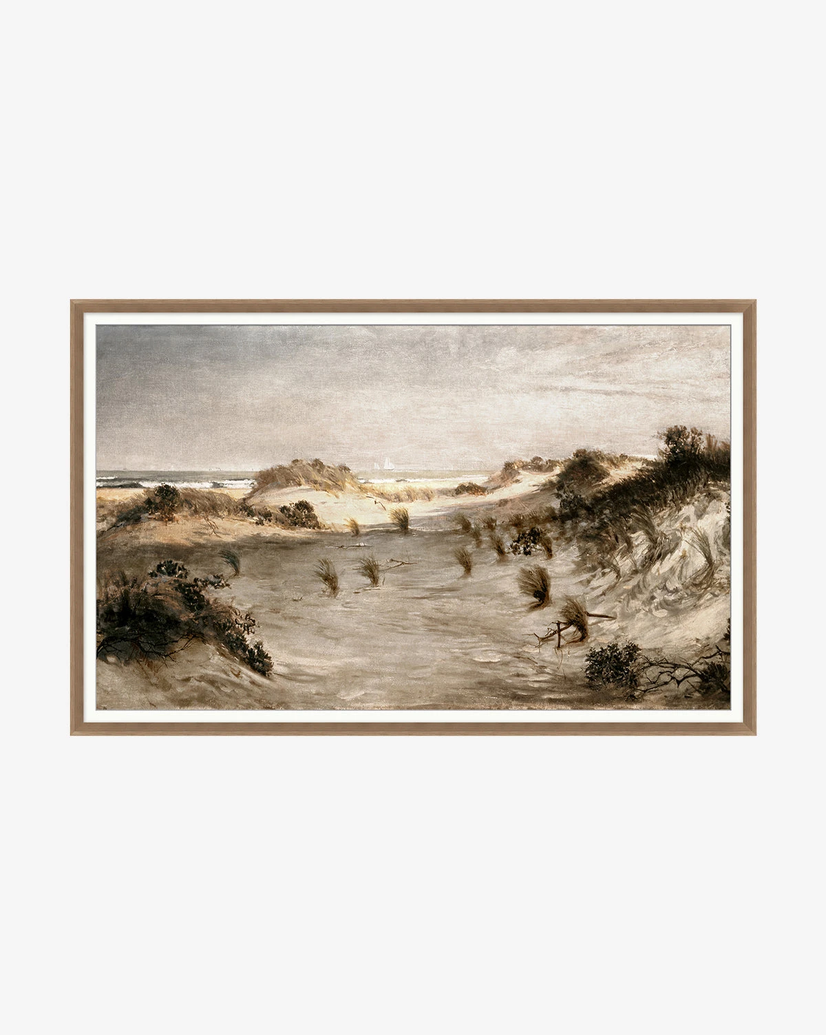 A calming beach scene with wind blowing through the grass and a bright sky comes to life with each detail in Morning Sand Dune. A museum-quality giclee print on a single mat, the expressive artwork tells a story wherever the piece rests. The wood frame adds character to your wall treatments or dresser vignettes.
