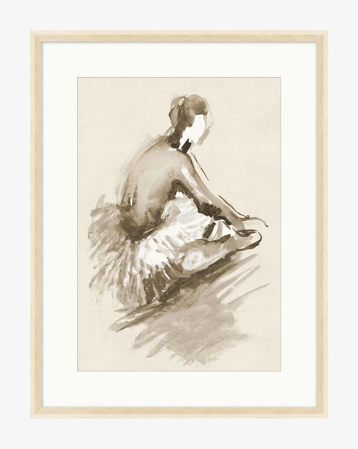 Mounted in a pickled white frame, Neutral Dancer is a giclee art print on paper, covered in plexiglass. This museum-quality piece features a sketch of a dancer that is given strong contrast in a tonal palette. With varied shades, this piece is perfect for a child’s room.Â