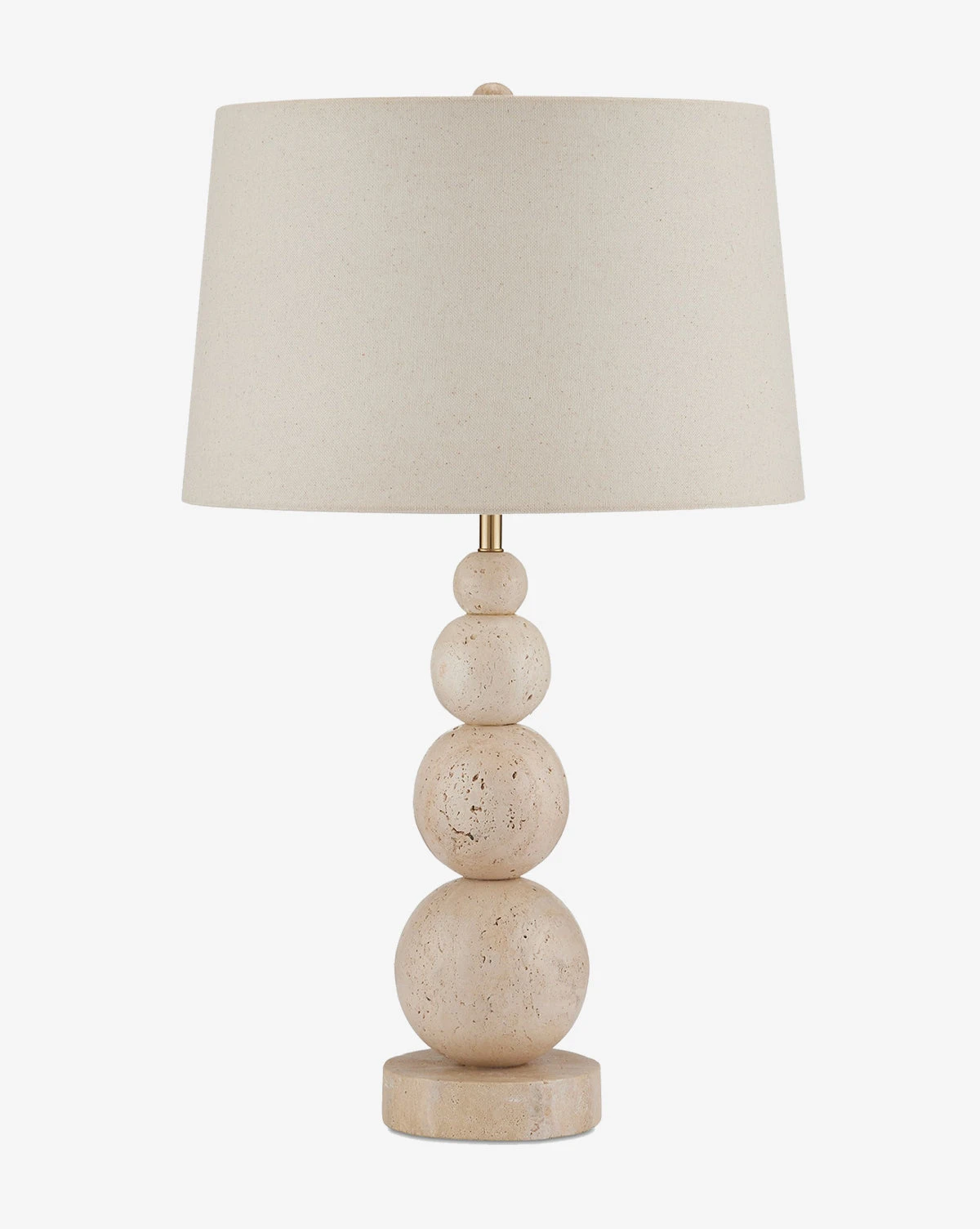 Refined and textural, the Niobe Table Lamp is made from natural travertine and a flax linen shade. Its sculptural base complements its drum shade, bringing warm light to your space.