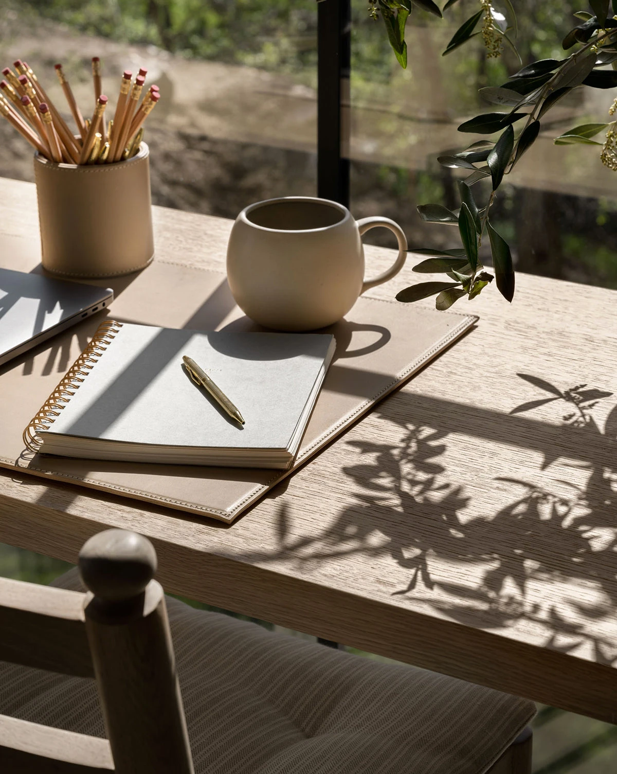 Made with high-quality leather in a nude hue, the Rupert Pencil Cup is a timeless home office essential. Bringing cohesion to your desk whether styled alone or with other Rupert home office styles, the pencil cup lends its subtle yet sophisticated quality to your space.