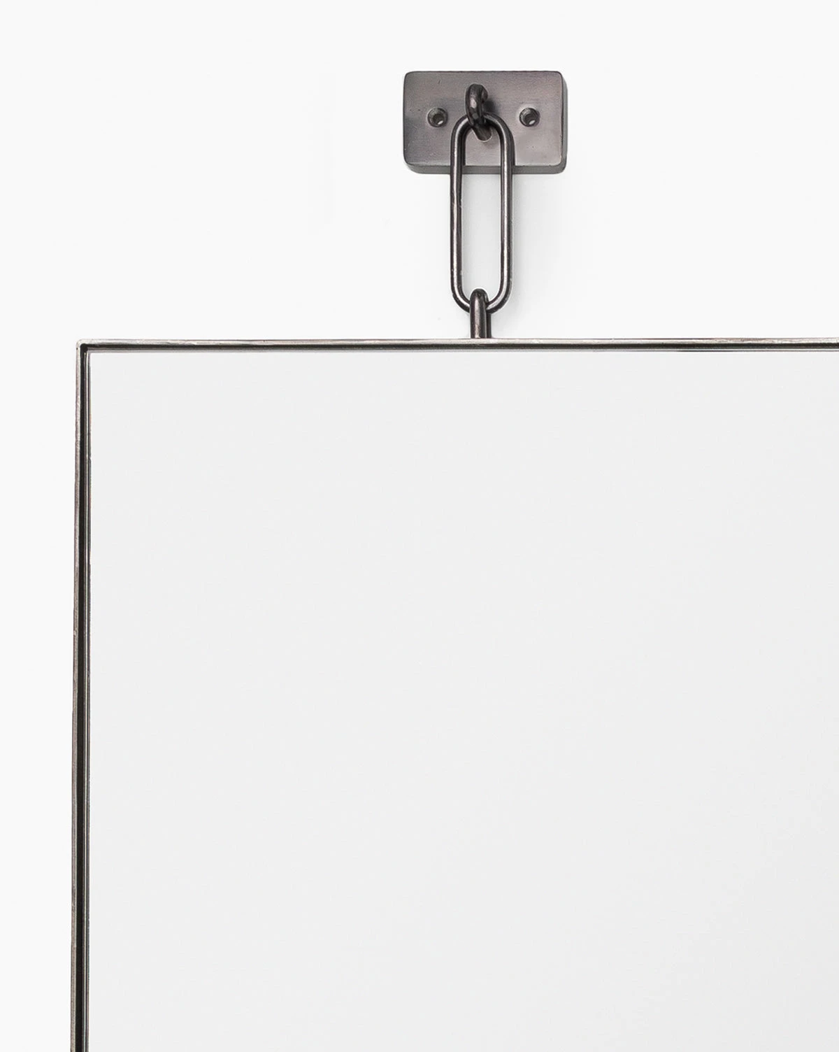 Sleek and approachable in a rectangular design, the Trenton Wall Mirror is crafted from stainless steel in two finishes. Its thin frame is supported by two metal mounting plates, giving a delicate, industrial tone to this modern mirror.