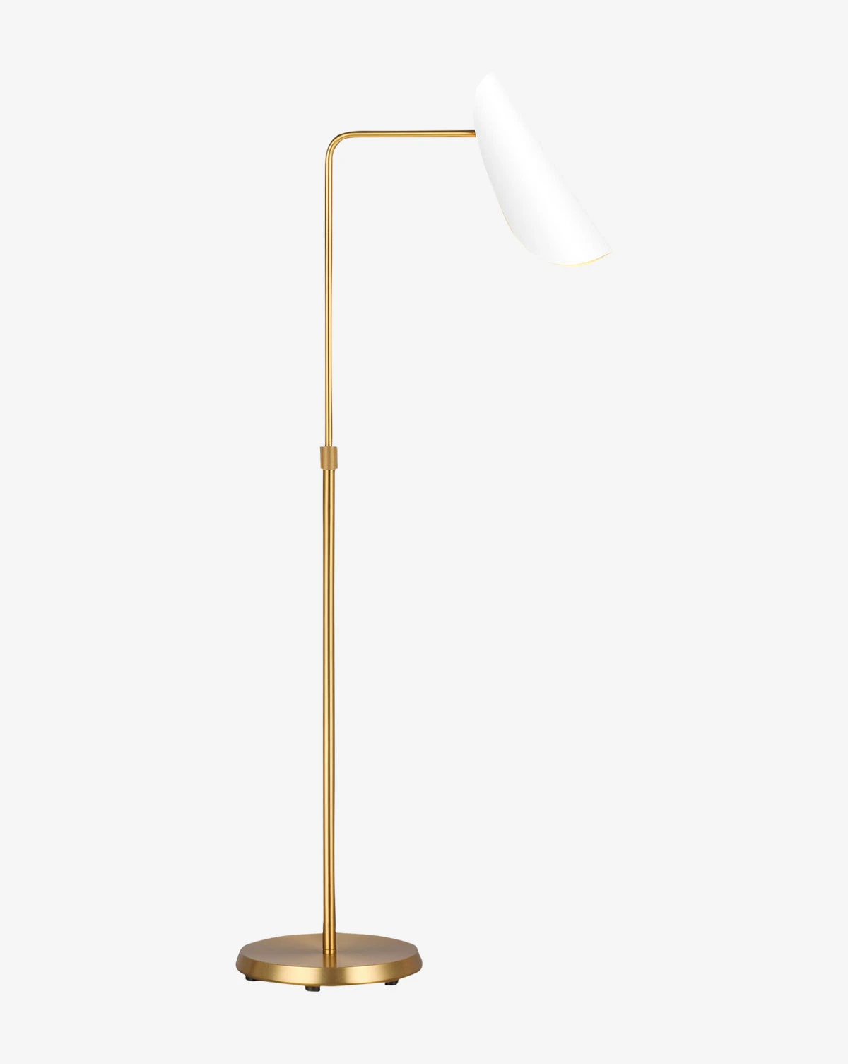 With an angled shade and bold lines, the Tresa Floor Lamp is versatile and eye-catching in your living space. Its steel body has a burnished brass finish that allows either color of shade to shine. With a round base, this adjustable floor lamp elevates any style with its thoughtful design.