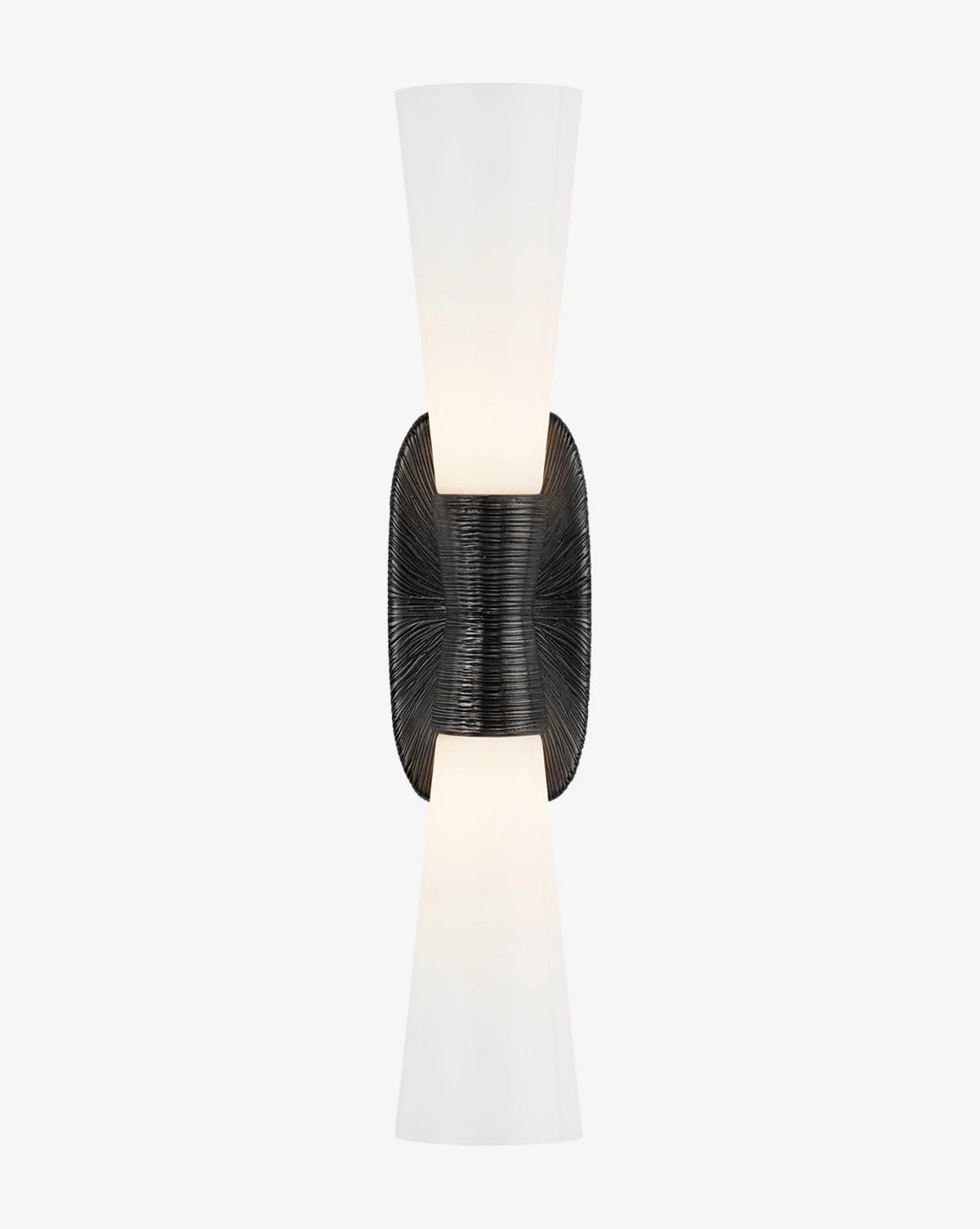 The unique texture and finishes of the Utopia Double Bath Sconce bring an element of interest while remaining versatile enough for a variety of styles and homes. It’s repeating, outburst pattern and funneled white glass elevate any space with form and function.