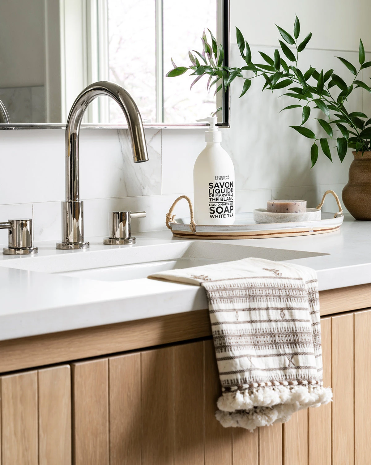 Not only does this soap leave your hands smelling of citrus and hints of white tea but it moisturizes as it washes. We love its simple, modern container about as much as its scent!